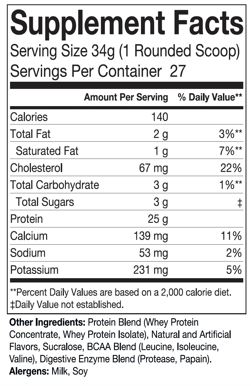 25g Ultra-Filtered Whey Protein. 27 servings.